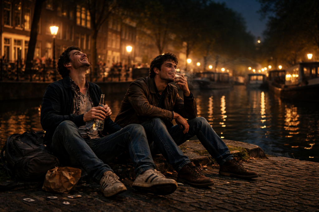 Éjfél tájt határoztuk el, hogy visszatérünk a belvárosba. Hiszen napközben is azt akartuk. Szerettük volna megcsodálni a kirakatokban grasszáló félmeztelen kurvákat. Pénzünk nincs. Legalább lássunk valamit. Nemde?
