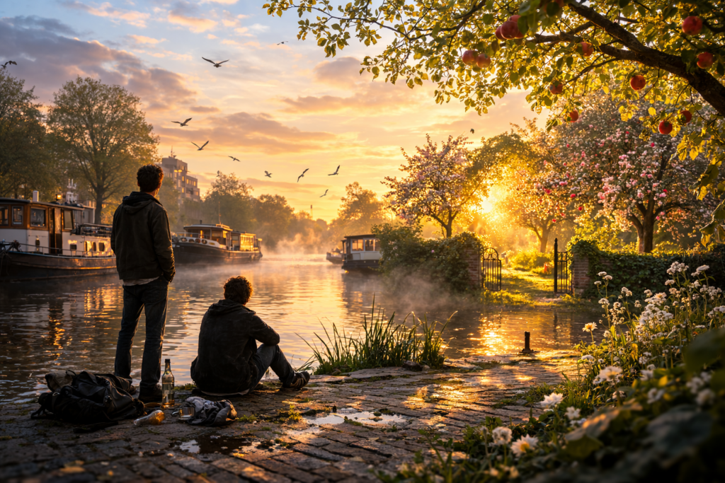 Éjfél után az Amsel vizében eszméltünk. Ilyenkor áprilisban nem egy irigylésre méltó állapot. Vacogtunk, és elfelejtettük a kirakatokból csábító, félmeztelen kurvákat.